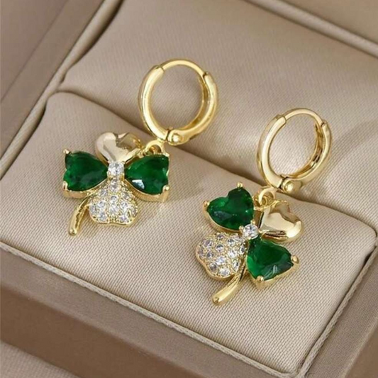 🍀Aretes de Trébol de la Buena Suerte🍀-Elegancia Dorada para Atraer Fortuna -Chapado Oro 18K